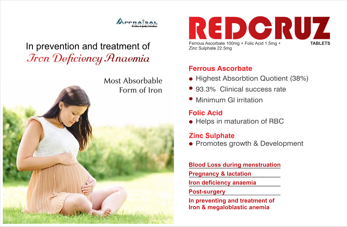 Ferrous Ascorbate 100mg + Folic Acid 1.5mg + Zinc Sulphate 22.5mg