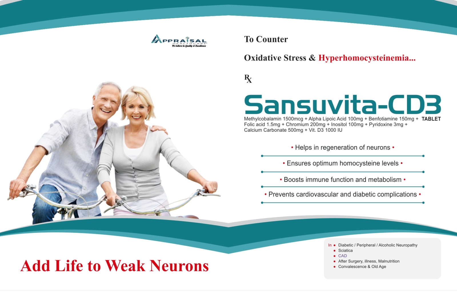 Methylcobalamin 1500mcg + Alpha Lipoic Acid 100mg + Benfotiamine 150mg + TABLET Folic acid 1.5mg + Chromium 200mg + Inositol 100mg + Pyridoxine 3mg + Calcium Carbonate 500mg + Vit. D3 1000 IU